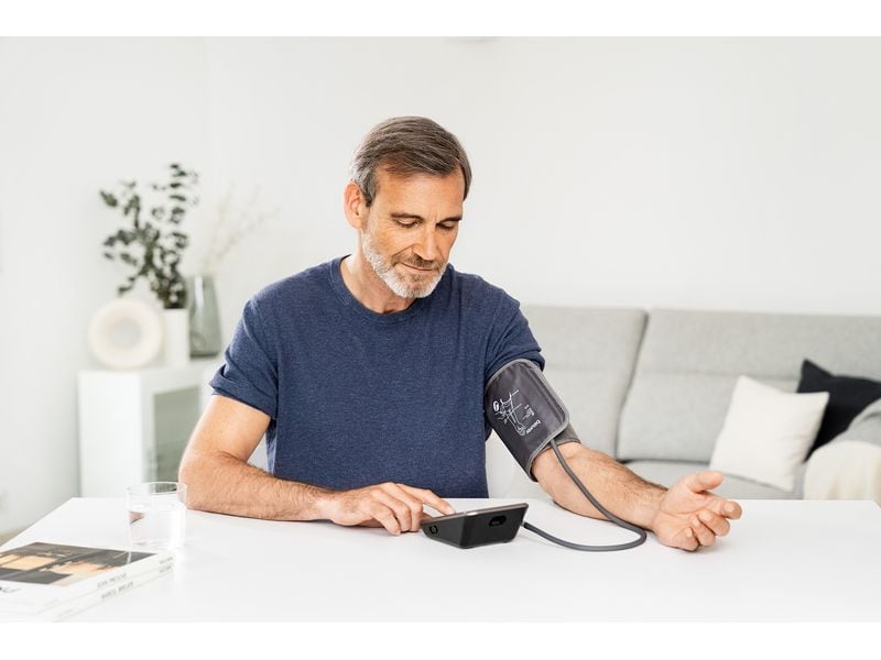 Die Bedienung ist denkbar einfach: Die sensorbasierten Touch-Knöpfe reagieren sofort, und die Manschettensitzkontrolle warnt dich, falls sie nicht korrekt angelegt ist. Die von Ärzten empfohlene Dreifachmessung sorgt für aussagekräftige Durchschnittswerte und minimiert Messfehler. Das übersichtliche Display mit seiner farbigen Risikoampel gibt dir eine sofortige Einordnung, ohne dass du Tabellen nachschlagen musst.